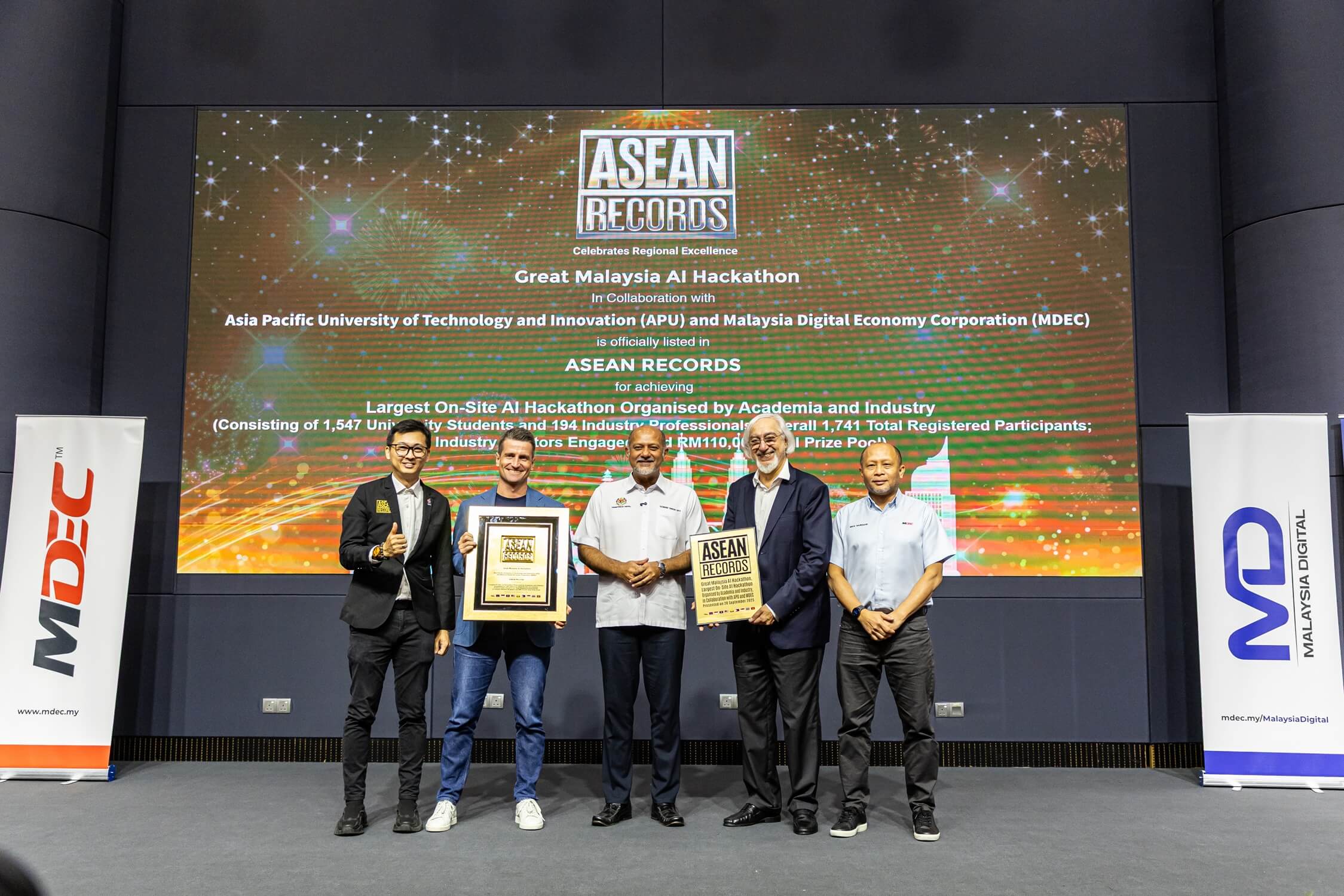 The Asia Pacific University of Technology & Innovation (APU), in collaboration with the Malaysia Digital Economy Corporation (MDEC) and powered by Amazon Web Services (AWS), successfully hosted the Great Malaysia AI Hackathon 2025, officially recognised by the ASEAN Records as the largest on-site AI hackathon jointly organised by academia and industry in the region.
